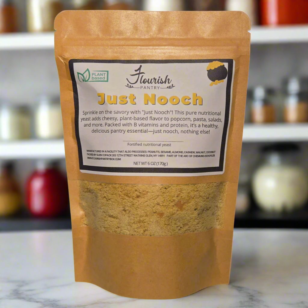Sprinkle on the flavor with "Just Nooch," the ultimate vegan pantry staple! Packed with savory, cheesy goodness, this pure nutritional yeast is perfect for topping popcorn, pasta, salads, or any dish that could use a plant-based flavor boost. High in B vitamins and protein, "Just Nooch" isn’t just delicious—it’s a healthy way to elevate your meals. No fillers, no fluff—just nooch.